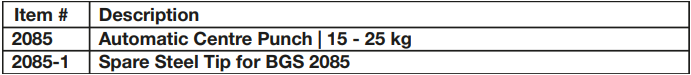 ĐỘT LỖ BGS 2085 | BGS PIN PUNCH 2085 | 15 - 25 kg