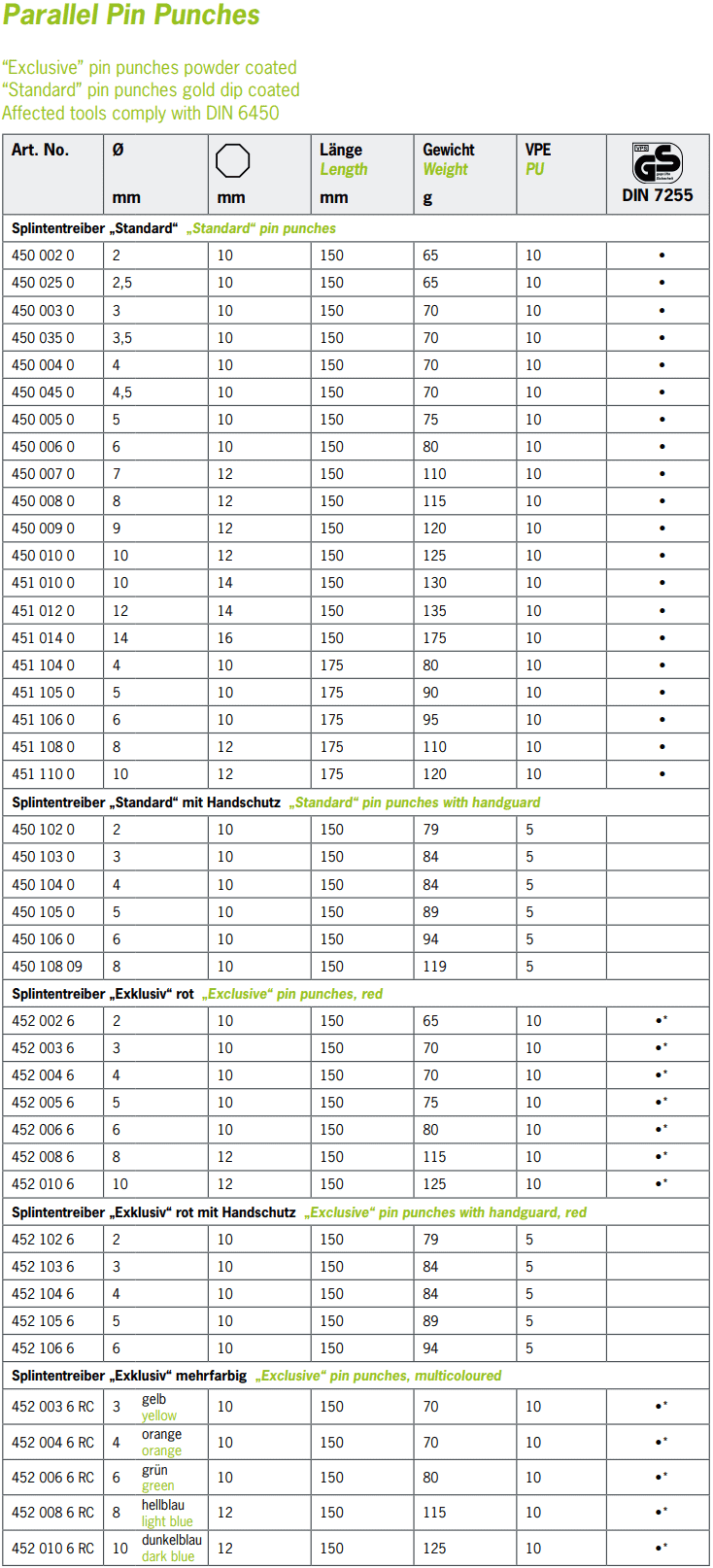 - Đột lỗ Rennsteig 450 045 0, Rennsteig pin punch 450 045 0: có đường kính đầu đột: Ø 4.5 mm, chiều dài tổng thể: 150 mm, chuyên dùng để đột mở rộng lỗ trong công nghiệp.