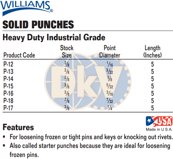 - Đột lỗ Snap-on P-18, Snap-on pin punch P-18 có bề rộng đục: 7/32", đường kính chuôi: 3/8", chiều dài tổng thể: 127 mm, chuyên dùng để đục phá các chi tiết trong công nghiệp.