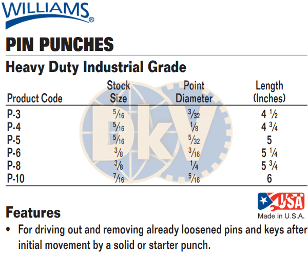 - Đột lỗ Snap-on P-8, Snap-on pin punch P-8 có bề rộng đục: 1/4", đường kính chuôi: 3/8", chiều dài tổng thể: 114 mm, chuyên dùng để đục phá các chi tiết trong công nghiệp.