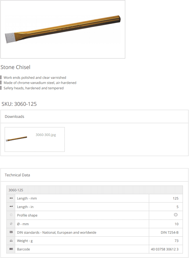 - Đục phẳng NWS 3060-125 được chế tạo bằng phương pháp rèn từ thép dụng cụ.