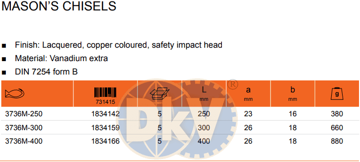 - Đục phẳng Bahco 3736M-300, Bahco Flat Chisel 3736M-300 có bề rộng đục: 26 mm, đường kính chuôi: 18 mm, chiều dài tổng thể: 300 mm, chuyên dùng để đục phá các chi tiết trong công nghiệp.
