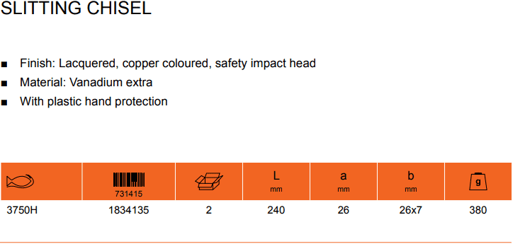 ĐỤC PHẲNG BAHCO 3750H | BAHCO FLAT CHISEL 3750H | 26 mm