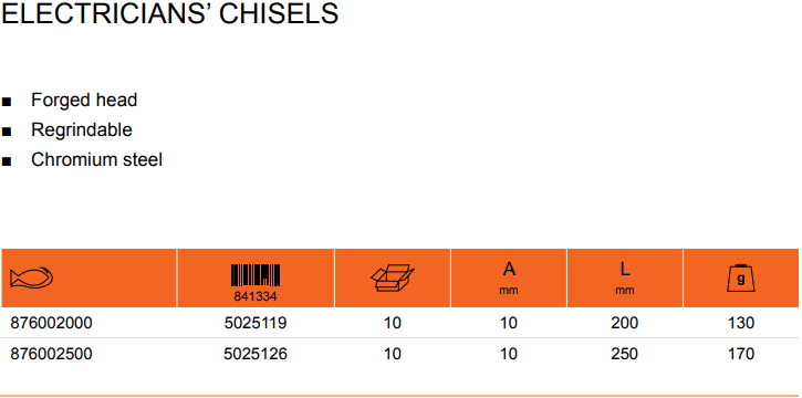 ĐỤC PHẲNG BAHCO 876002500 | BAHCO FLAT CHISEL 876002500 | 10 mm