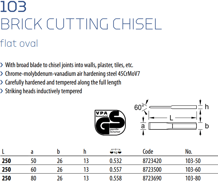 ĐỤC PHẲNG GEDORE 103-60 | GEDORE FLAT CHISEL 103-60 | 60 mm