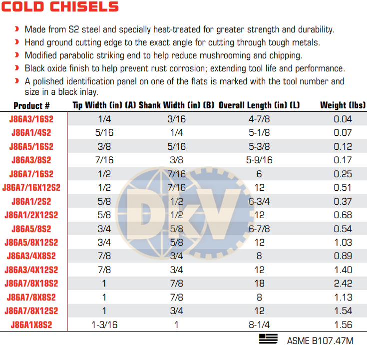 - Đục phẳng Proto J86A3/8S2, Proto flat chisel J86A3/8S2 có đường kính đầu đột: Ø 7/16", đường kính chuôi: 3/8", chiều dài tổng thể: 141 mm, chuyên dùng để đột mở rộng lỗ trong công nghiệp.
