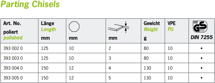 - Đục phẳng Rennsteig 393 002 0, Rennsteig Flat Chisel 393 002 0: có bề rộng đục: 2 mm, chiều dài tổng thể: 125 mm, chuyên dùng để đục phá các chi tiết trong công nghiệp.