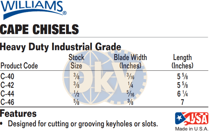 - Đục phẳng Snap-on C-42, Snap-on flat chisel C-42 có bề rộng đục: 3/8", đường kính chuôi: 1/4", chiều dài tổng thể: 143 mm, chuyên dùng để đục phá các chi tiết trong công nghiệp.