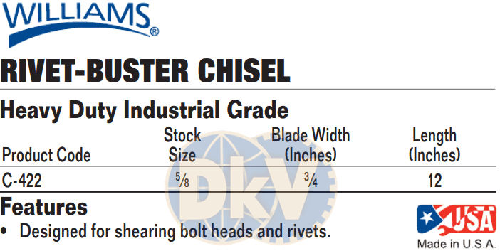 - Đục phẳng Snap-on C-422, Snap-on flat chisel C-422 có bề rộng đục: 5/8", đường kính chuôi: 5/8", chiều dài tổng thể: 305 mm, chuyên dùng để đục phá các chi tiết trong công nghiệp.
