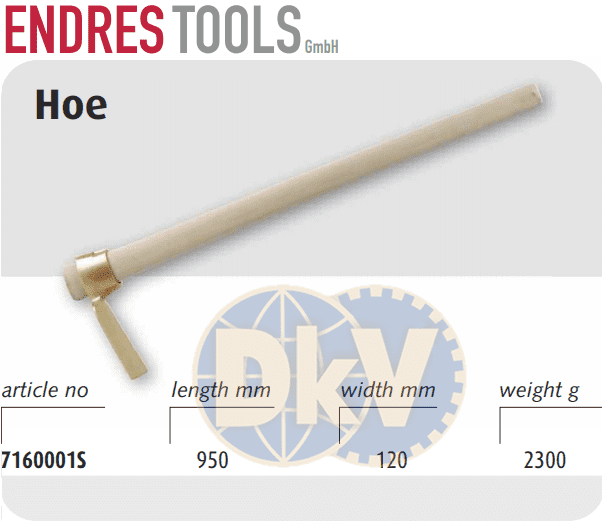 - Cuốc chống cháy nổ Endres 7160001S, Endres non sparking hand picks 7160001S có bề mặt đục: Ø 120 mm, chiều dài tổng thể 950 mm, chuyên dùng trong môi trường yêu cầu tính phòng chống cháy nổ.