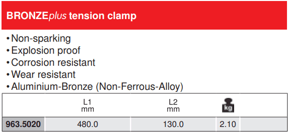 - Kẹp chữ F chống cháy nổ KS Tools 963.5020, KS Tools non sparking F-clamp 963.5020 được chế tạo bởi hợp kim đồng/nhôm (Br/Al), có độ mở: 130 mm, chiều dài: 480 mm, chuyên dùng để kẹp các chi tiết môi trường phòng chống cháy nổ.