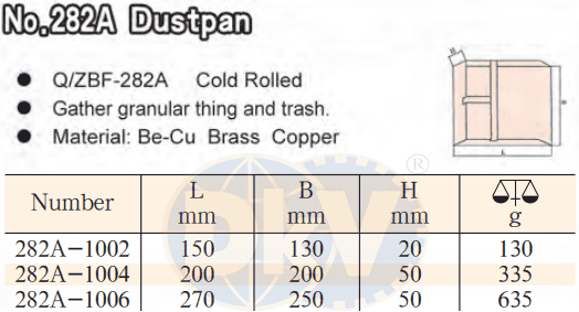 - Khay xúc chống cháy nổ X-Spark 282A-1006, X-Spark non sparking dustpan 282A-1006 có chiều dài cạnh: 250x50 mm, chiều dài tổng thể: 270 mm, chuyên dùng trong môi trường yêu cầu tính phòng chống cháy nổ.