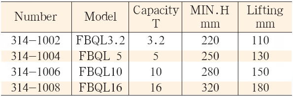 - Kích cơ khí chống cháy nổ X-Spark FBQL16, X-Spark non sparking journal jack FBQL16 có sức nâng max: 16 tấn, hành trình max: 180 mm, chiều cao tĩnh ban đầu min: 320 mm, trọng lượng: 14 kg. Sử dụng nâng hạ trong môi trường có tính cháy nổ cao.