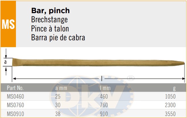 - Xà beng chống cháy nổ Ampco MS0460, Ampco non sparking crow bar MS0460 có chiều dài đầu: 25 mm, chiều dài tổng thể: 460 mm, chuyên nại các chi tiết trong môi trường phòng chống cháy nổ.