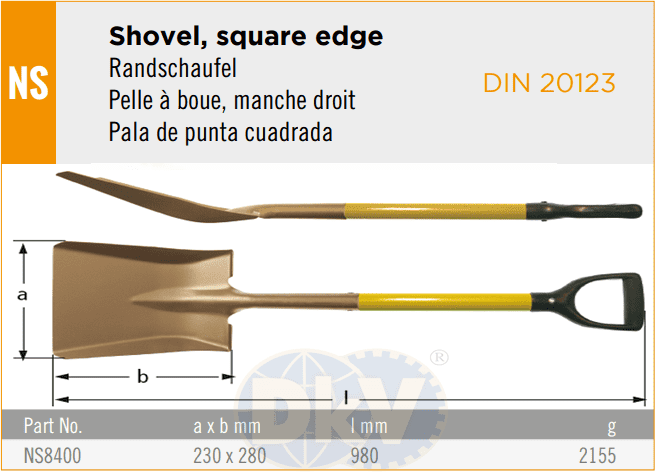 - Xẻng chống cháy nổ Ampco NS8400 , Ampco edging spade with T-handle NS8400 có bề mặt đục: Ø 230x280 mm, chiều dài tổng thể 1155 mm, chuyên dùng trong môi trường yêu cầu tính phòng chống cháy nổ.