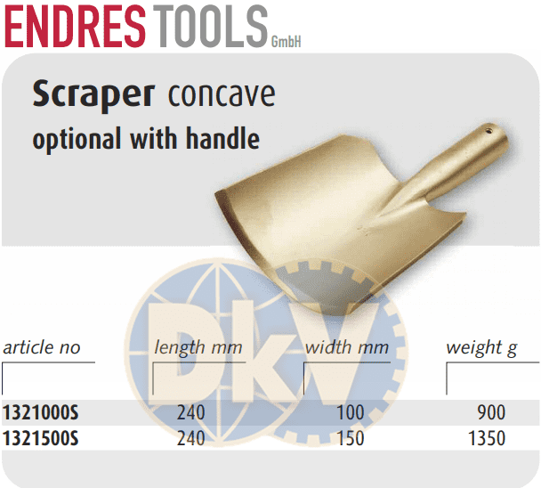 - Xẻng chống cháy nổ Endres 1321500S, Endres edging spade with T-handle 1321500S: có bề mặt đục: Ø 150 mm, chiều dài tổng thể 240 mm, chuyên dùng trong môi trường yêu cầu tính phòng chống cháy nổ.