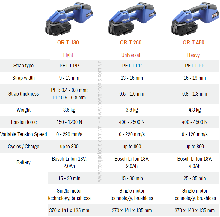 - Orgapack OR-T 260 sử dụng công nghệ động cơ đơn, không dùng chổi than. Với tốc độ rút dây đai 220 mm/s.