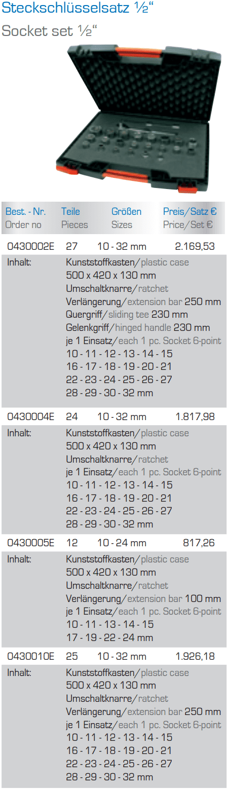 Bộ khẩu Inox A-Mag 0430002E, A-MAG inox socket set 0430002E là hộp dụng cụ 27 chi tiết, size khẩu đầu vào 1/2", chuyên dùng để siết/vặn bulong, đai ốc, vít trong công nghiệp.Các chi tiết trong bộ khẩu Inox A-Mag 0430002E gồm: