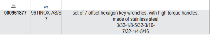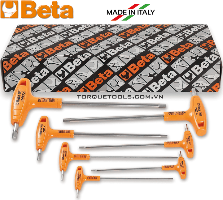 - Bộ lục giác chữ T Beta 96TINOX-AS/7, Beta inox hexagon key wrench set 96TINOX-AS/7: gồm 7 chi tiết (3/32-1/8-5/32-3/16-7/32-1/4-5/16") được dùng trong môi trường có từ tính cao.