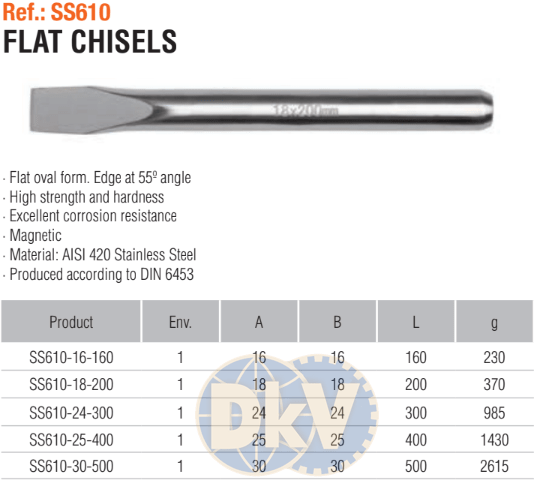 - Đục phẳng Inox Bahco SS610-30-500, Bahco inox Flat chisel SS610-30-500 có size: 30 mm, chiều rộng 30 mm, chiều dài: 500 mm, dùng trong môi trường có từ tính cao.