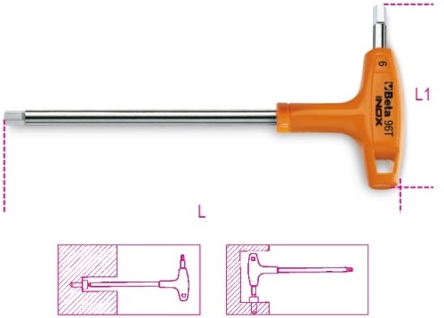 - Lục giác chữ T Beta 96T INOX 3, Beta inox hexagon key wrench 96T INOX 3: chuyên siết các bulong, vít chìm lục giác: 3 mm, chiều dài: 153 mm, được dùng trong môi trường có từ tính cao.