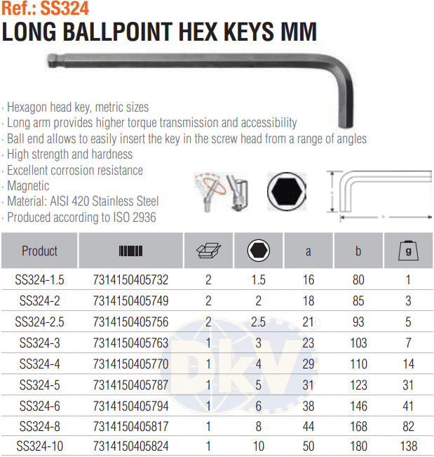 - Khóa lục giác Inox Bahco SS324-1.5 được chế tạo bằng phương pháp rèn hợp được chế tạo bằng (Stainless Steel AISI 420) theo tiêu chuẩn ISO 2936 có khả năng chống ăn mòn và oxy hóa, tuổi thọ cao.