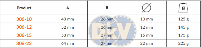 - Cắt ống Bahco 306-10 có chiều cao: 43 mm, trọng lượng: 0.125 kg.