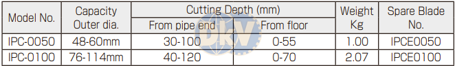 - Cắt ống MCC IPC-0100, MCC pipe cutters IPC-0100: có đường kính: Ø 114 mm, sử dụng bánh (đĩa cắt) chuyên dùng để cắt các loại ống trong công nghiệp.