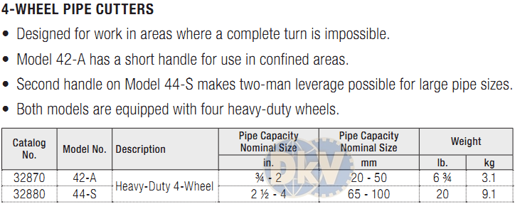 - Cắt ống Ridgid 32870 có trọng lượng: 3.1 kg.
