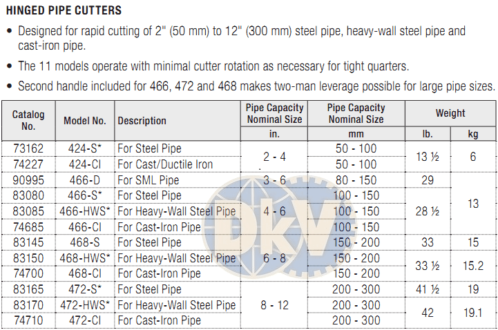 - Cắt ống Ridgid 83085, Ridgid pipe cutter 83085 chuyên dùng để cắt các loại ống trong công nghiệp có đường kính: Ø100 - 150 mm (4 - 6"). Lưỡi cắt của cắt ống cắt ống Ridgid 83085 được chế tạo bằng thép dụng cụ có độ bền cao.
