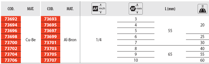 - Khẩu lục chìm chống cháy nổ Egamaster 73698 (Egamaster non sparking hexagon socket 73698) có đầu vào 1/4", size đầu ra lục giác: 6 mm, chuyên dùng trong môi trường phòng chống cháy nổ. Đầu chụp bulong chống cháy nổ Egamaster 73698 được chế tạo từ hợp kim đồng/bery (Cu Be).