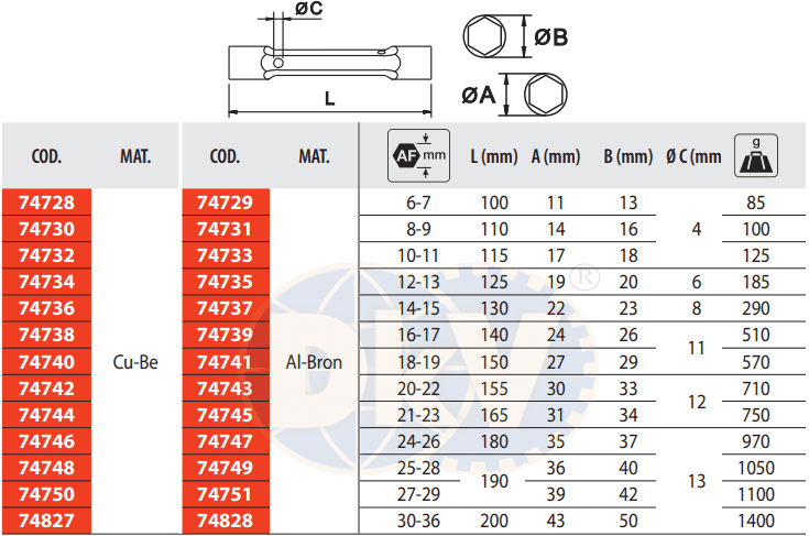 KHẨU CHỮ T CHỐNG CHÁY NỔ EGAMASTER 74751 | EGAMASTER NON SPARKING SOCKET DOUBLE ENDED 74751 | 27 - 29 mm | 190 mm