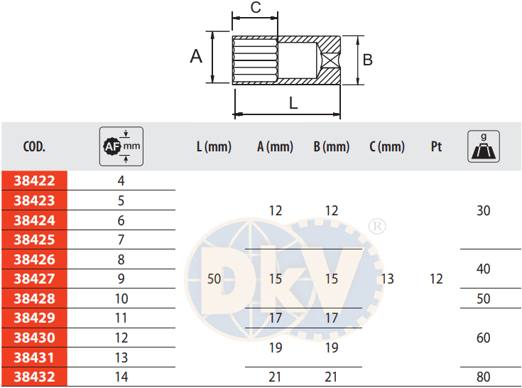 - Khẩu chụp bulong Inox Egamaster 38431 (đầu chụp bulong Inox Egamaster 38431) có đầu vào 1/4", size đầu ra 12 cạnh: 13 mm, chuyên dùng để siết bulong, đai ốc, trong môi trường yêu cầu sạch sẽ (thực phẩm, y tế, phòng lab).