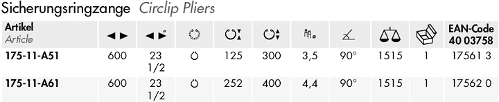 KÌM BANH NWS 175-11-A51 | NWS CIRCLIP PLIERS 175-11-A51 | 125 - 300 mm | 600 mm