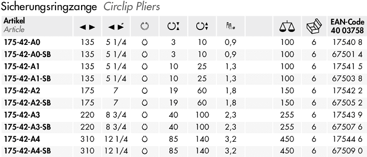 - Kìm banh NWS 175-42-A4-SB, NWS circlip pliers 175-42-A4-SB: chuyên dùng để banh các vòng đệm, vòng lót, cá chặn.. phổ biến trong lắp ráp, bảo dưỡng công nghiệp. Khả năng banh: Ø 85 - 140 mm, đường kính ty đầu kìm: Ø 3.2 mm.