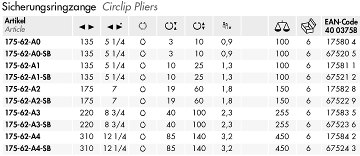 KÌM BANH NWS 175-62-A2 | NWS CIRCLIP PLIERS 175-62-A2 | 60 mm | 175 mm