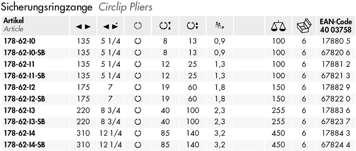- Kìm banh NWS 178-62-I0-SB, NWS circlip pliers 178-62-I0-SB: chuyên dùng để banh các vòng đệm, vòng lót, cá chặn.. phổ biến trong lắp ráp, bảo dưỡng công nghiệp. Khả năng banh: Ø 8 - 13 mm, đường kính ty đầu kìm: Ø 0.9 mm.