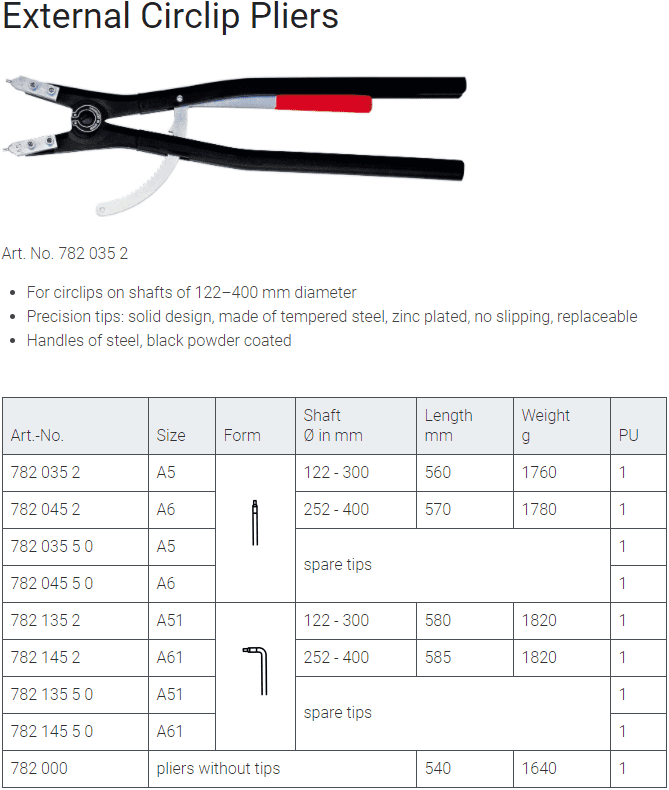 - Kìm banh Rennsteig 782 135 2, Rennsteig circlip pliers 782 135 2: chuyên dùng để banh các vòng đệm, vòng lót, cá chặn.. phổ biến trong lắp ráp, bảo dưỡng công nghiệp. Khả năng banh: Ø 122 - 300 mm.