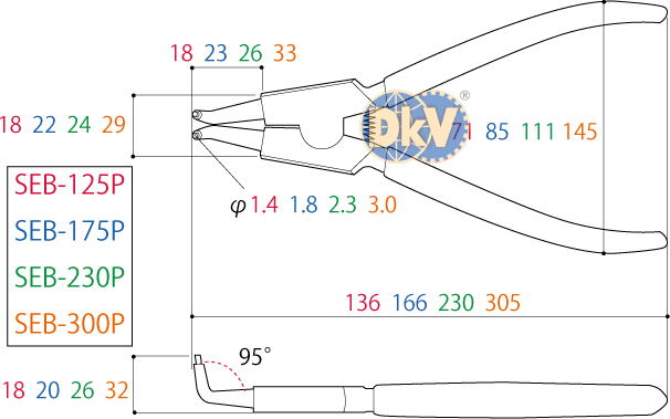 KÌM BANH TSUNODA SEB-175P | TSUNODA CIRCLIP PLIERS SEB-175P | 40 mm | 166 mm