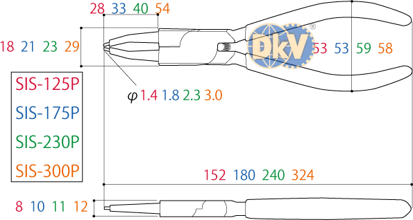 - Kìm banh Tsunoda SIS-300P, Tsunoda circlip pliers SIS-300P: chuyên dùng để banh các vòng đệm, vòng lót, cá chặn.. phổ biến trong lắp ráp, bảo dưỡng công nghiệp. Độ mở: 165 mm, chiều dài: 305 mm.