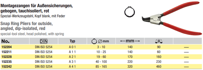 - Kìm banh Friedrich 152228, Friedrich circlip pliers 152228: chuyên dùng để banh các vòng đệm, vòng lót, cá chặn.. phổ biến trong lắp ráp, bảo dưỡng công nghiệp. Khả năng banh: Ø 19 - 60 mm.