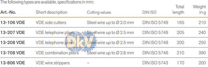 - Kìm mũi nhọn cách điện Bernstein 13-208-VDE, Bernstein vde flat nose pliers 13-208-VDE: với ứng dụng cắt các chi tiết trong môi trường điện thế cao < 1.000 V, có khả năng cắt với dây mềm: 2.5 mm, chiều dài: 200 mm.