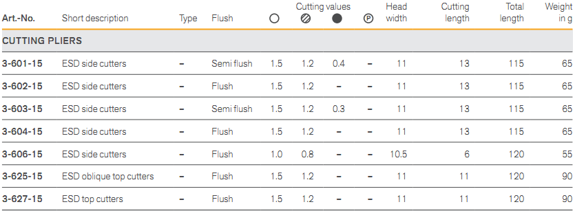 - Kìm cắt chống tĩnh điện Bernstein 3-606-15, Bernstein ESD Side Cutter 3-606-15 chuyên dùng để cắt các chi tiết phổ biến trong môi trường có từ tính cao. Khả năng cắt dây mềm Ø 1 mm, dây cứng Ø 0.8 mm (HRC 56-58).