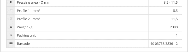 - Kìm cắt NWS 382-610, NWS flat cable cutter pliers 382-610: chuyên dùng để cắt các chi tiết phổ biến trong công nghiệp. Khả năng cắt với dây cáp đồng nhiều sợi Ø 8.5 mm.
