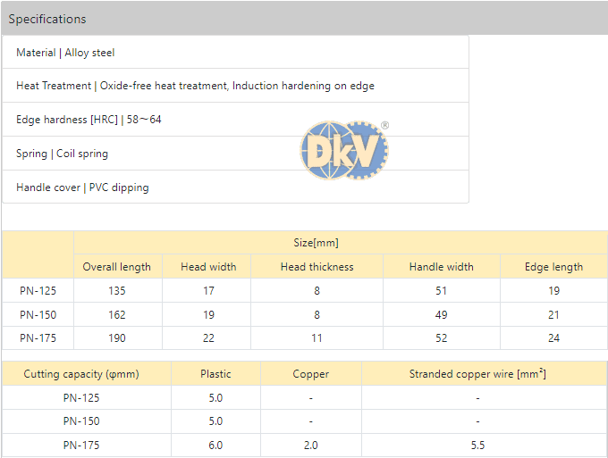 - Kìm cắt Tsunoda PN-125, Tsunoda cutting pliers PN-125: với khả năng cắt cắt với dây mềm Ø 5 mm, chiều dài: 135 mm, chuyên dùng để cắt các chi tiết phổ biến trong công nghiệp.