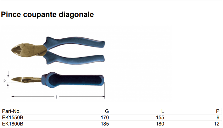 - Kìm cắt chống cháy nổ Amco EK1800B, Amco cutting sparking pipe plier EK1800B chiều dài tổng thể 180 mm, chuyên dùng cắt các chi tiết trong môi trường yêu cầu tính phòng chống cháy nổ.
