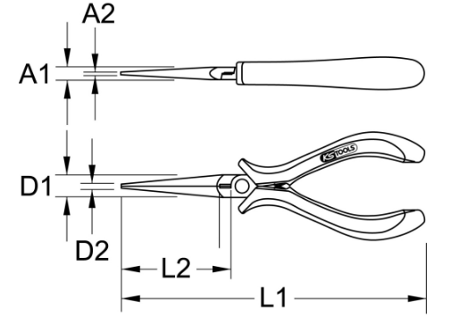 - Kìm mũi dài chống tĩnh điện KS Tools 500.7068, KS Tools ESD long nose pliers 500.7068 chuyên dùng để uốn, kẹp,... các chi tiết phổ biến trong môi trường có từ tính cao. Đường kính mũi kìm Ø 10 mm