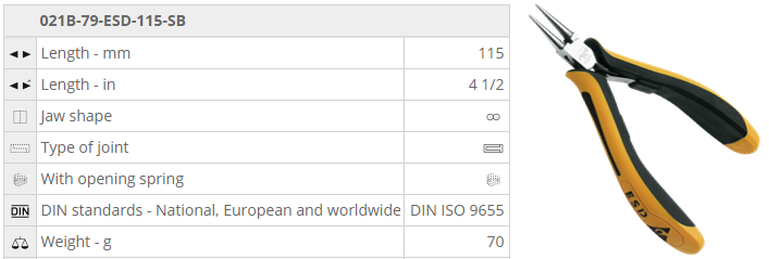 KÌM MỎ NHỌN CHỐNG TĨNH ĐIỆN NWS 021B-79-ESD-115-SB | NWS ROUND NOSE PLIERS ESD 021B-79-ESD-115-SB