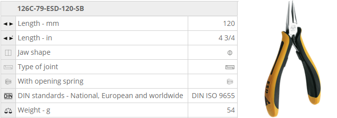 KÌM MỎ NHỌN CHỐNG TĨNH ĐIỆN NWS 126C-79-ESD-120-SB | NWS CHAIN NOSE PLIERS ESD 126C-79-ESD-120-SB
