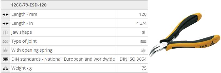 - Kìm mỏ nhọn chống tĩnh điện NWS 126G-79-ESD-120, NWS Chain Nose Pliers 126G-79-ESD-120 chuyên dùng để uốn, kẹp... các chi tiết phổ biến trong môi trường có từ tính cao.